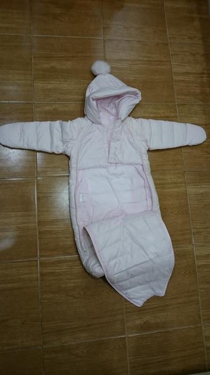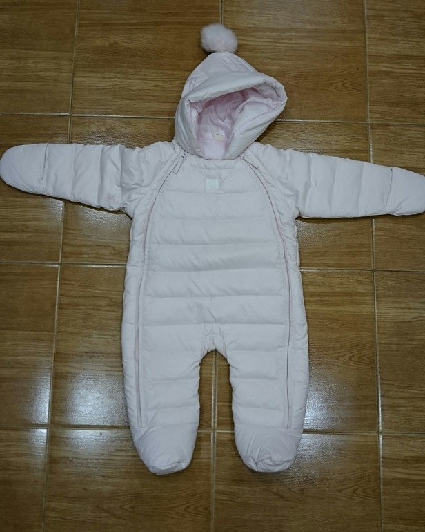 Цвет светло-светло розовый. Размер 9-12месяцев (при необходимости напишу замеры). Без пятен. Носился мало. Состав 100% белый утиный пух.