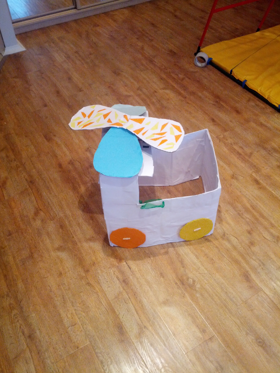 Недавно муж застал меня за раскрашиванием очередной коробки: я сидела на детском коврике (вся такая беременная вторым мальчиком....) и закрывала/открывала дверку в домике для ракеты издавая характерные звуки - полностью воспроизводя Васину игру...