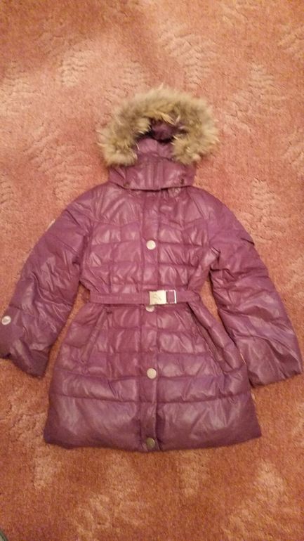 Пуховое пальто Нельс. Баклажан. Очень теплое и нарядное. Рост 140 см. Цена 2900. Новое стоит от 10 000 руб. Почта за ваш счет.