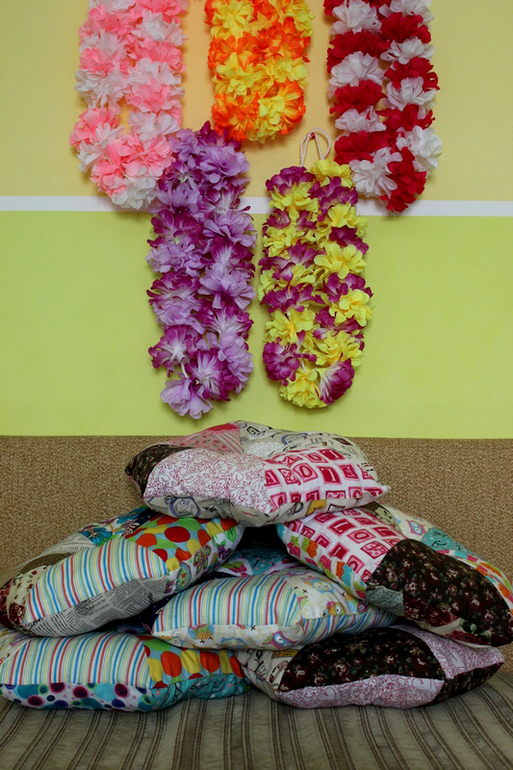 2. Придумать оформление беседки (готовые цветочные гирлянды, но надо узнать масштабы самой беседки...) ,подушки сшила для удобства сидения)))