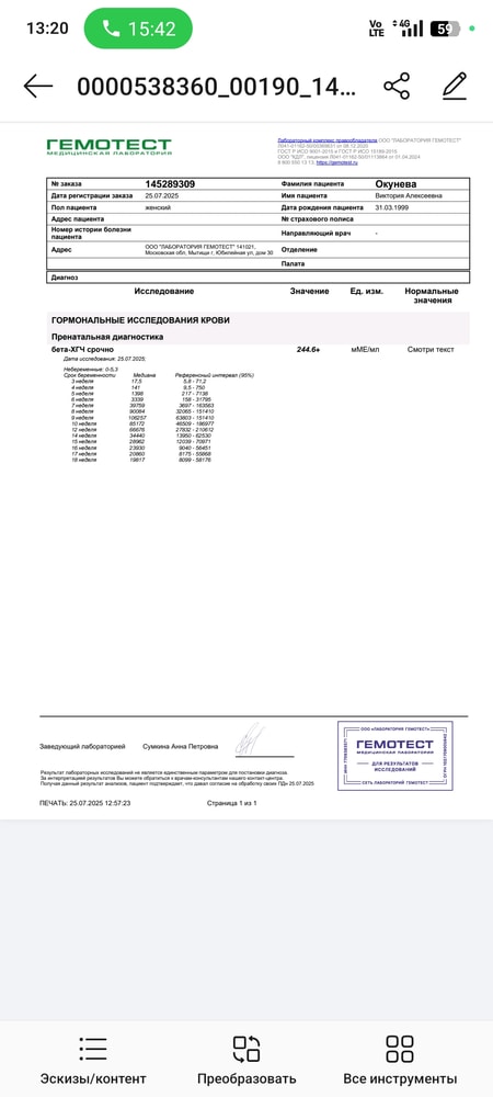 Сегодня сдала повторный хгч 🥺первый малыш 👶
