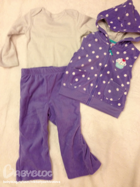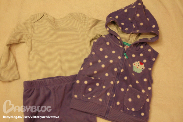Два мягеньких флисовых костюмчиков с дл рукавом и без рукавкой на весну-лето. Я такие же уже брала на 6 мес. Осталась в восторге.