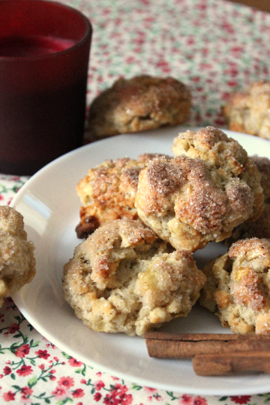 Сначала смешиваем творог, сахар и масло растительное до однородности. Затем смешиваем муку, разрыхлитель и корицу. Добавляем мучную смесь к творожной и хорошо вымешиваем. Чистим и режем на кубики яблоки. Добавляем в тесто и хорошо вмешиваем руками. Формируем из теста 16 одинаковых шариков и обваливаем каждый шарик в сахаре со всех сторон. Выкладываем на противень. Ставим в заранее разогретую духовку на 180 гр. на 20 минут.