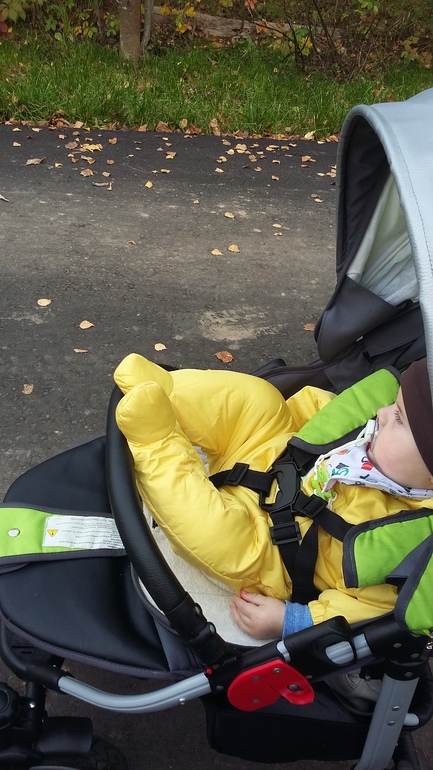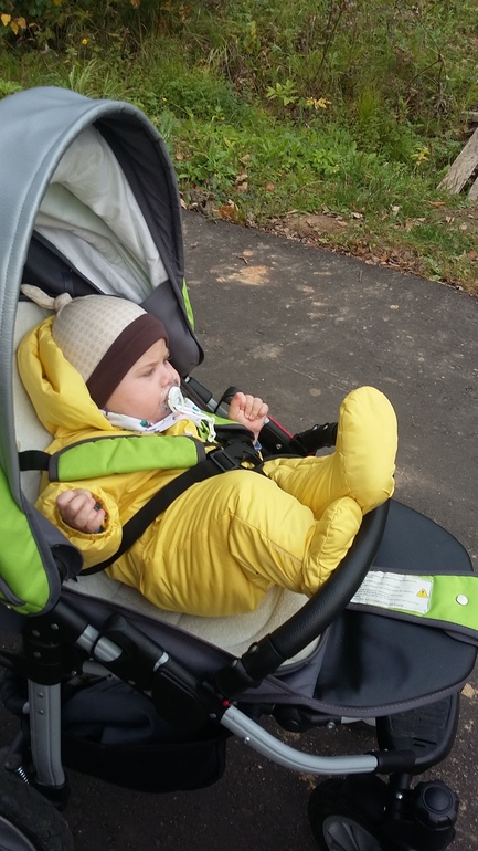 Сегодня прогулялись первый раз. На улице холодно, сынок как раз в комбезе, очень удобно было, сразу уснул. Едет плавно, поворачивает удобно и даже с фиксированными колесами удобно управляется. Я очень довольна коляской, кто думает ее брать, не пожалеете!!!![]()