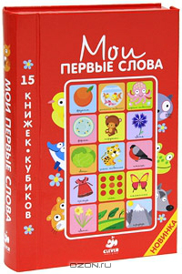 Книга мои первые слова, очень интересная, Вике понравилось смотреть мини книжки кубики