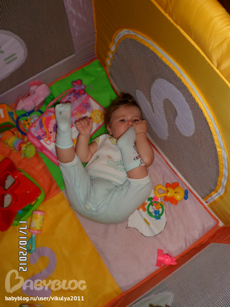 Сейчас Вика уже бегает везде, и ей совсем не хочется сидеть в нем, она уже в двух комнатах усидеть не может, а о манеже и вообще говорить нечего, поэтому прослужил он полгода и сегодня я его убираю.....
