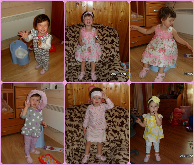 1. Горшок – высаживаю, она спокойно сидит и почти каждый раз, когда сажаю, писает, какает тоже на горшок, но если поймаю. Сама конечно не просится и подгузник полный, и на горшок писает, я не понимаю, сколько можно писать, хотя она водохлеб еще тот. Ну я думаю у нас неплохая ситуация с горшком, главное он стал нашим другом! В год она выворачивалась и убегала от него.