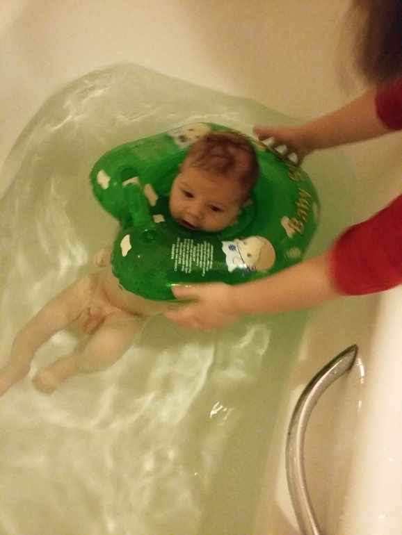 Переворачиваться не пытается, зато высоко задирает ножки, лежа на спине