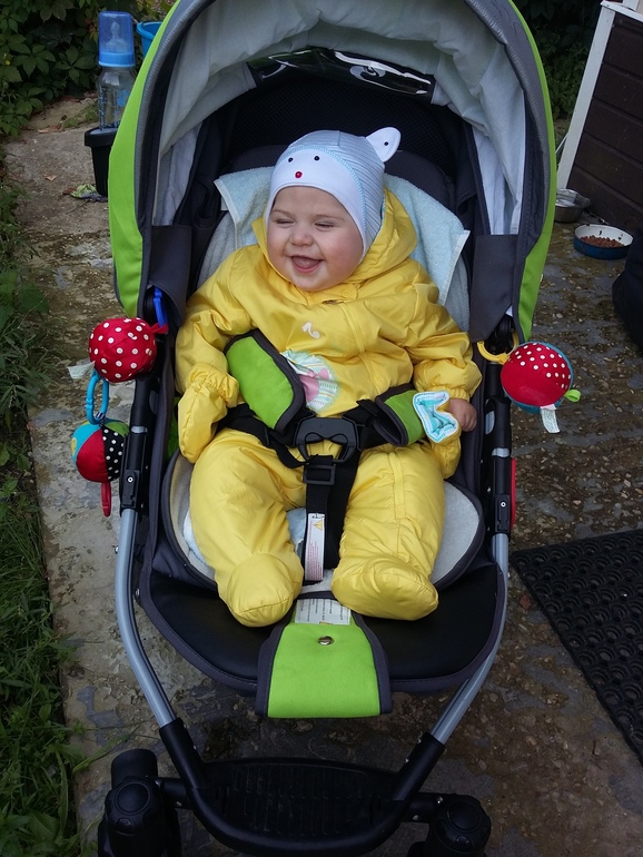 а еще утром пошли гулять,посадила в коляску, пристегнула одну ногу отвернулась на секунду и он полетел вниз головой, хорошо,что на траву,но там были камешки,об которые он поцарапал щеки и лоб и расшиб себе подбородок.