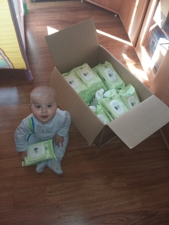 призом стал годовой запас косметики Chicco. Прислали 24 упаковки влажных салфеток и три шампуня. Ждали посылочку месяц и вот сегодня пришла, ура!!!