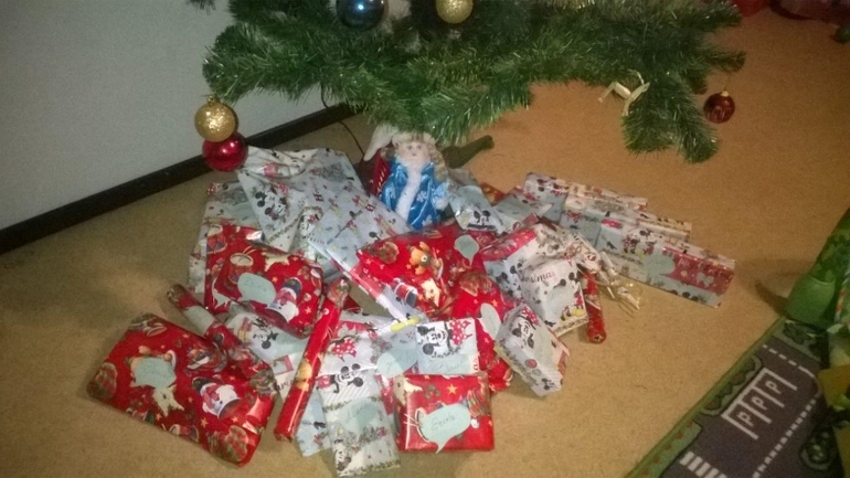А это на Новый год ещё и Дед Мороз заходил, подарочки принёс))) Они так прыгали от неожиданности и радости, что мне телефоном никак не уловить было))