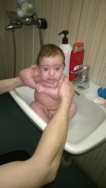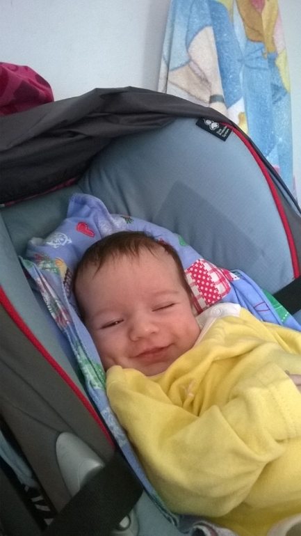 Здесь вот малышка совсем, может 2 недельки ей, а уже вовсю улыбается.