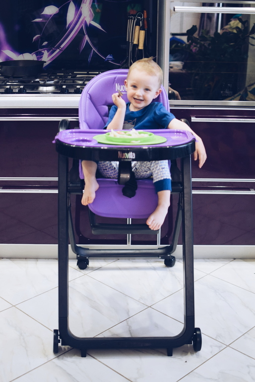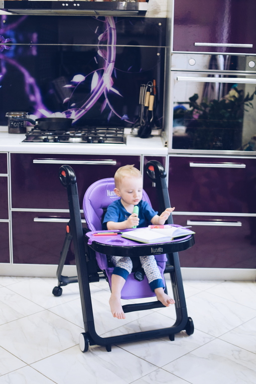 Он очень стильный, компактный и главное безопасный!👍 Мы выбрали нашу любимую черно-фиолетовую цветовую гамму, он отлично вписался в наш интерьер ! Стульчик складной! Съёмный поднос(в наборе их два, обычный чёрный широкий и сверху при желании крепится поменьше фиолетовый с подстаканником). Есть регулировка наклона спинки! Это очень удобно, малыш может лежать спать в нем и сидеть! Пятиточечные ремни-фиксаторы обеспечивают полную безопасность! 7 уровней высоты сидения! 3 положения подложки и 2 положения подноса! На фото видно что сын сначала кушает, когда стульчик поднят на максимальную высоту, позже стульчик опускается вниз , он сам может в него залезть и заняться своими делами, допустим рисовать👍. На других фото показано положение лёжа ! Даже в его возрасте ему очень нравится иногда так полежать и допустим почитать книжки!👍