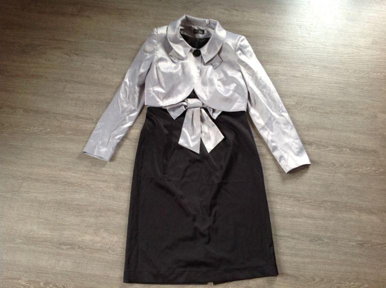 Очень классный комплект: платье и укороченый пиджачок, 48р, сидит идеально, ткань очень плотная, стрейч, платье с матовым блеском, пиджачок более нарядный. И в пир и в мир! Экв 2500 Состояние отличное
