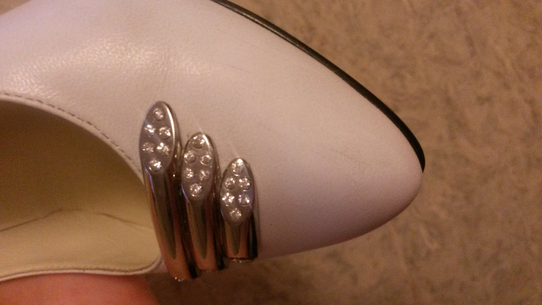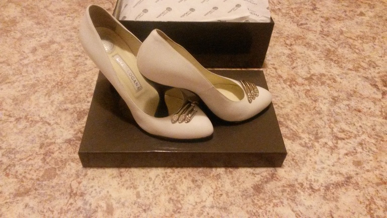 Туфельки надела 1 раз на банкет.Оригинальный устойчивый каблучок, высотой 9см, размер 37. Ношу 36-36,5.Очень комфортные, не натирали, не давили. Есть незначительная царапинка (см фото), но на ножке не видно. набойки целые+дополнительные еще в комплекте. Коробка .