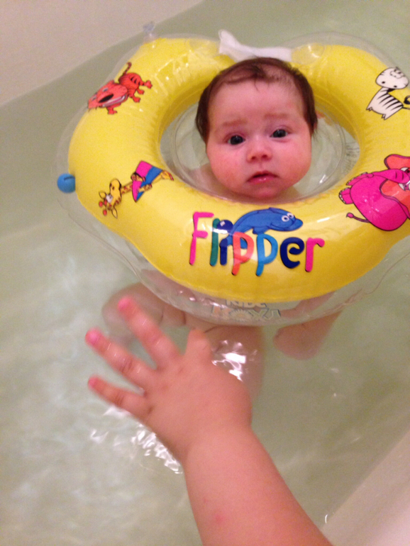 Для истории: купали в 22.30, минут 5. А потом Женька немного испугала ее. Ну ничего, наверстаем. В целом ведь ей понравилось. Она очень активно себя вела.