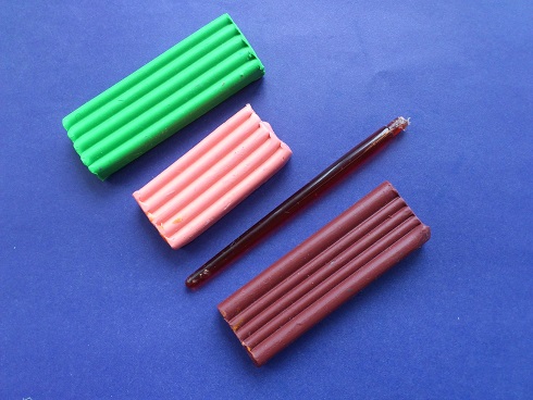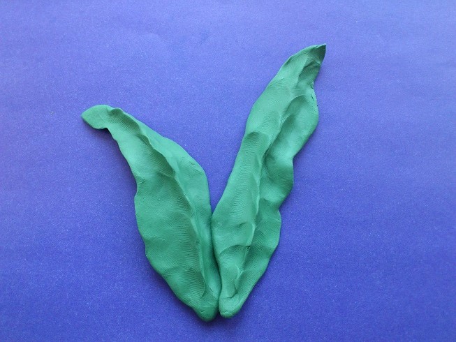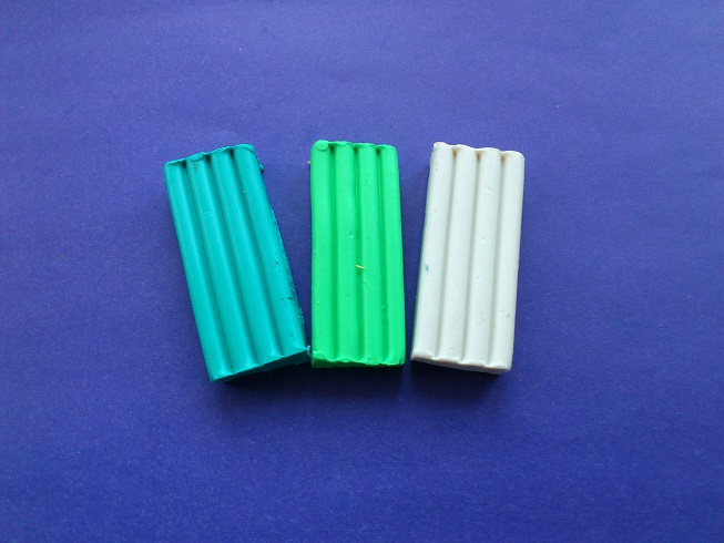 1. Всего лишь два оттенка пластилина необходимы для лепки данной поделки. Чтобы зеленый цвет в готовом изделии не казался слишком скучным, разбавьте его вторым родственным оттенком. Красивый мраморный эффект придаст реалистичности листьям. Но можно оставить и монотонный зеленый цвет.