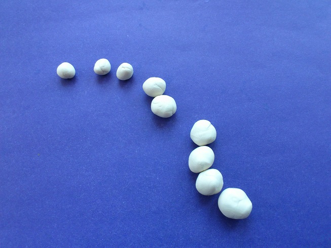 5. Белую массу поделите на порции разного размера, желательно постепенно уменьшать размер кусочков. Скатайте шарики.