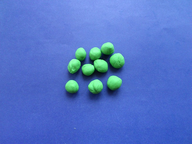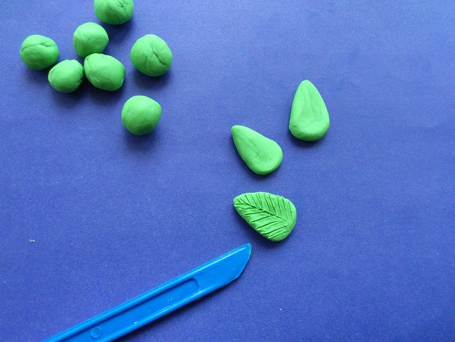 2. Подготовьте маленькие порции зеленого пластилина для лепки листьев.