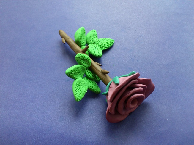 Подарок для мамы или бабушки готов. Пластилиновую розу можно окропить туалетной водой, чтобы добиться устойчивого правдоподобного аромата.