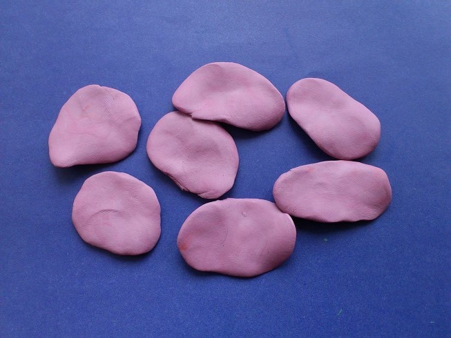 8. Подготовьте розовые кусочки для лепки лепестков розы.
