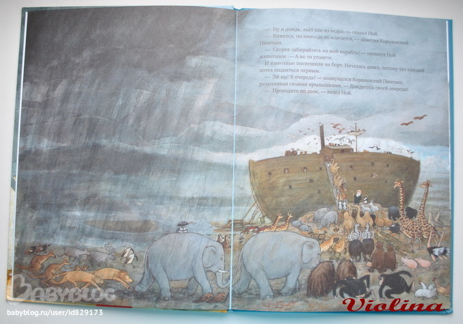 Книга не про потоп как таковой, не про "каждой твари по паре", вообще никакой религиозной подоплеки я в этой книге не заметила. Наводнение, корабль, Ной, животные - лишь декорация для самого действа. Теоретически, события, подобные описанным в книге, могли быть и во время пожара, торнадо, нашествия инопланетян, либо какого-либо другого бедствия. Даже не обязательно мирового масштаба. Форс-мажора гордского или деревенского уровня вполне бы хватило. Но автору заходелось приплести сюда знаменитый библейский сюжет. Зачем? Опять какой-то маркетинговый ход? Возможно, не исключено...
