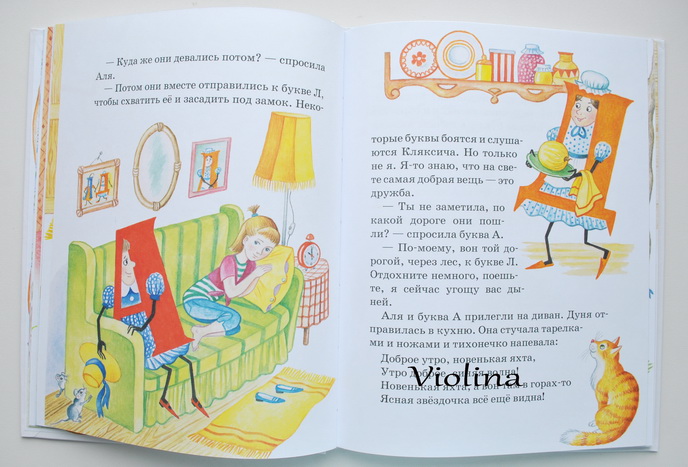 Эту книгу я приобрела ближе к дочкиным 4-м годам, т.к. мы начали изучение-повторение букв (готовимся к чтению). По мне история очень затянута - автор не обошла вниманием ни одну букву, но дочке эта книга нравится. Оно и хорошо, ведь "повторение (букв) - мать учения".