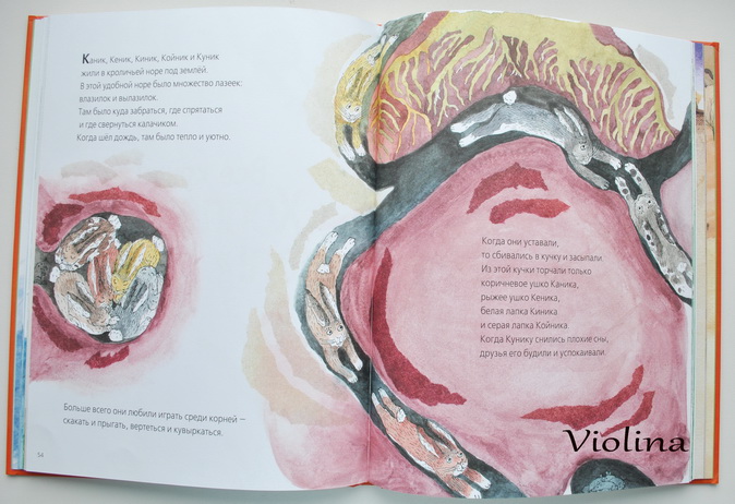 Очень приятные иллюстрации - картинки такие уютненькие, что я бы и сама была не прочь побывать у кроликов в гостях, отправиться с ними в путешествие или на праздник. Благодаря картинкам (да-да, именно им), герои получились очень живые и эмоциональные - художник сумел отразить всю гамму переживаний и ощущений, испытываемых кроликами в зачастую непростых ситуациях.