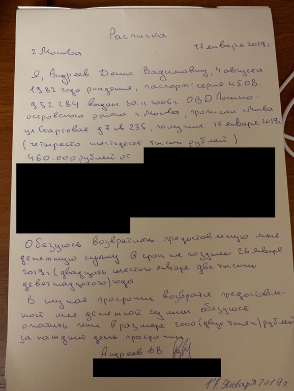 Андреев Денис Вадимович 4.08.1982 паспорт 4508 № 952284 выдан 30.11.2006 г. ОВД Лосино-Островского района г. Москвы, прописка ул. Стартовая дом 7 кв 235