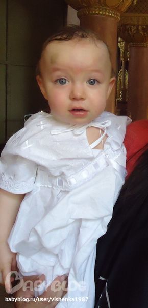 ооо, Дашуль,я уж и не упомню...он как один раз ударился лбом, как начал ходить(перед крещением - в 11 месяцев),так постоянно эту шишку обновляет, причем уже с обеих сторон,то об косяк дверной то еще обо что-нибудь)) он на всех фотографиях с крещения как бандит))