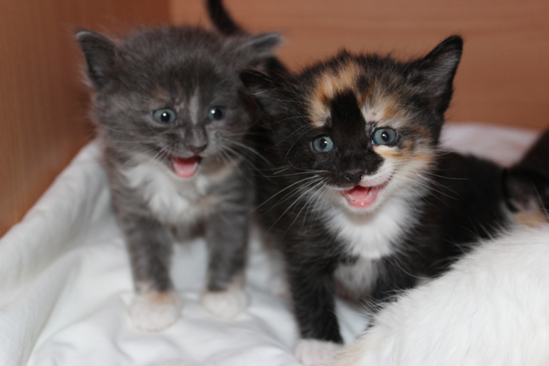 1. 3 котенка в мамочку, "счастливого" трехцветного окраса. 2 девочки и 1 мальчик. Одна девочка - сааамая маленькая, тихая, ее дети больше других таскают, так как она единственная, кто не сопротивляется такому настырному вниманию =)) Глазки у всех сине голубые и белые красивые грудки.