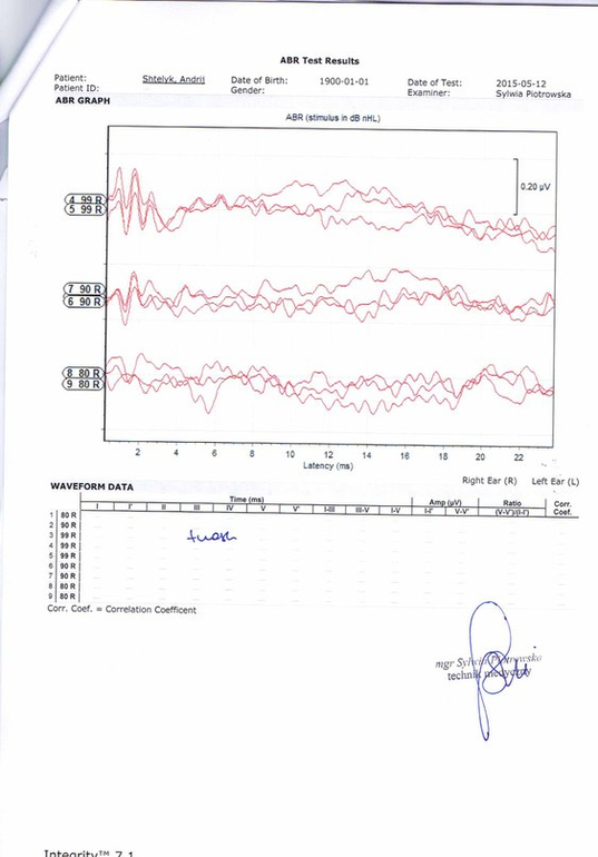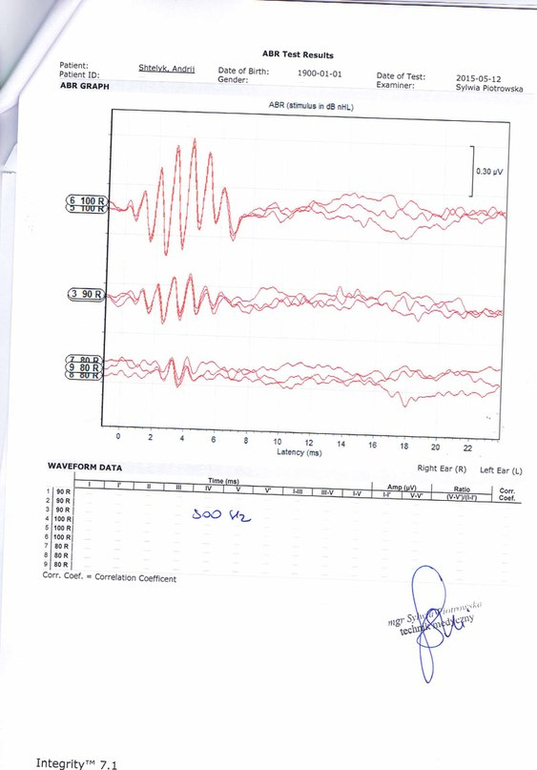 мы решили обследоватся в Польше в центре Мединкус. После обследования в Польше нас просто повергли в шок, вердикт - двухстороняя глухота IV степени. То что мы тогда чувствовали не передать словами,просто отчаяние и боль.