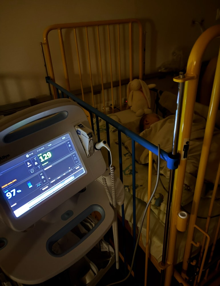 Для меня эта ночь была очень тяжелой, я не заснула, наверное, ни на минуту. К счастью в Польше оба родителя могут быть с ребенком столько, сколько хотят. Слава богу все анализы и узи вышли хорошие, новых снижений сатурации не было. Ковид вызвал воспаление легких, отсюда изменения на снимке, но оно не переросло в бактериальную инфекцию к счастью. Спустя сутки наблюдения нас выписали. Благодаря монитору, интуиции и хорошим врачам сын получил кислород и полное обследование. В целом если бы остались дома, возможно, ничего бы и не случилось, а возможно именно этой ночью снова случилась бы остановка дыхания или снижение сатурации. Оказалось вдобавок, что он унаследовал от меня анемию и вышел гемоглобин 9.5 при норме от 13, так что теперь ещё и принимает железо в каплях.