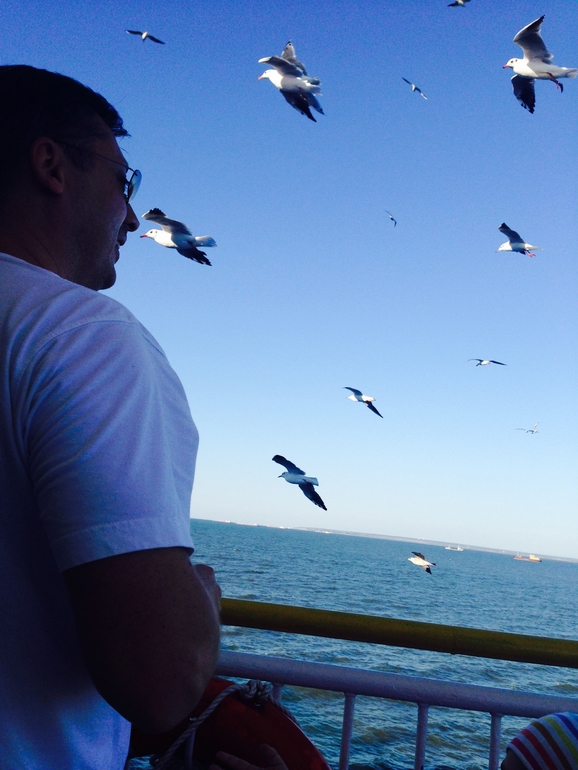 В общем, на переправе с новым билетом мы оказались уже вовремя. Очереди не было совсем для тех, у кого электронный билет, на все про все ушло 2 часа. Отдельная очередь для тех, у кого электронных билетов нет, и там очеееень много машин было.