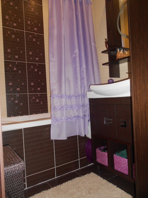 Всем здравствуйте!Читала я читала это замечательное сообщество и наконец решила - а чего бы мне тоже свой ремонт не пустить на обозрение?Правда не доделанный,но все же...уж больно интересно услышать мнения со стороны:)Ванная и туалет у нас раздельные,но оформлены будут в одном стиле...Почти все готово,за исключением приятных глазу декоративных мелочей и кое-какой мебели(в планах:закрыть бойлер в шкафчик,установить тумбу под раковинкой в туалете,придумать место для хранения белья - это все из глобального:)))От вас,хотелось бы услышать интересные предложения по декору,ну и собственно отзывы:) Заранее прошу прощения за строительный и прочий мусор...!!
