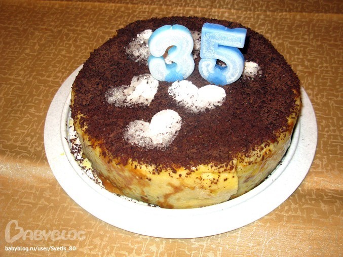 Всем понравилось, хотя тортами уже избалованы разными. Это торт Луки Монтерсино. Рецепт . Единственное, что я изменила - добавила желатин в мусс из шоколада, потому что не захотела держать торт в морозилке. Не было возможности перед подачей часа за 2-3 вынуть его из морозилки.