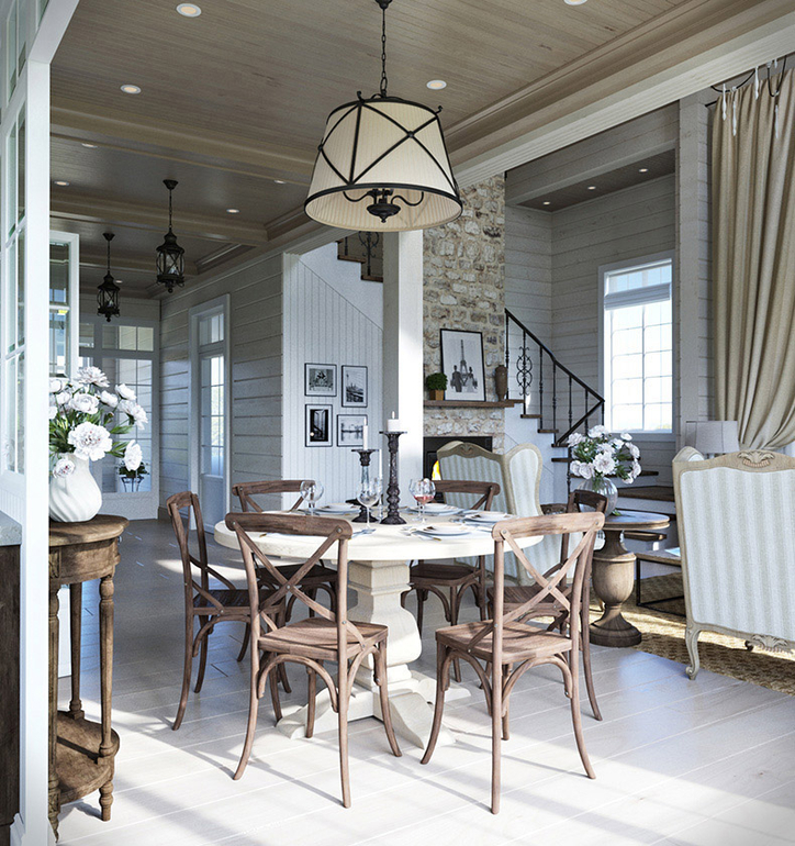 Стиль прованс - отличный выбор для загородного дома большой семьи.