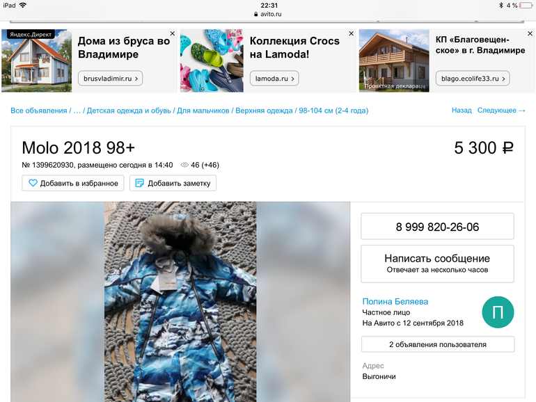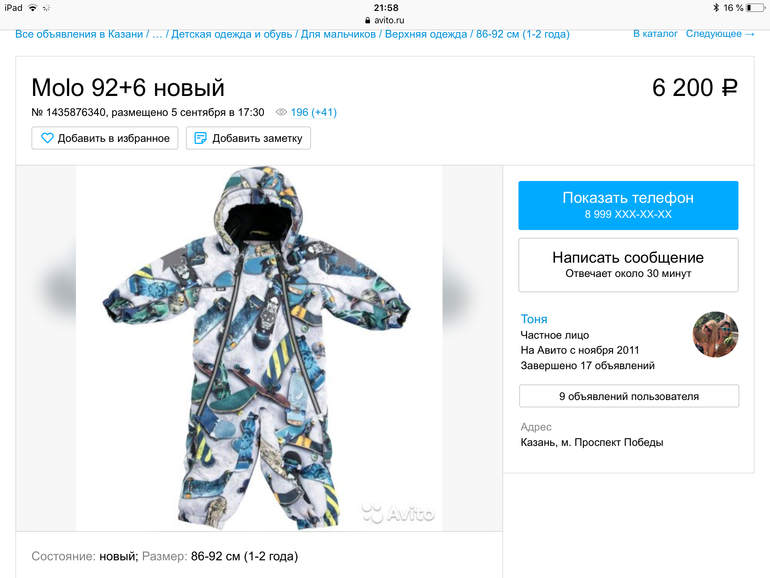 Будьте осторожны! На авито орудует безпринципная особa, которая не боится попась в ад! Некая Тоня из Казани, позже она же Александр из Москвы, затем Наталья продавала костюмы известного бренда со своего профиля на авито (к слову на авито она с 2011 года). Я давно искала новый костюм по приемлемой цене, и вот На днях нашла... общались сначала через авито, потом я попросила видео, она с номера 8(999)964-07-04 мне прислала видео; меня все устроило, я оплатила 6500 на карту сбера ее якобы мама некой Натальи Викторовне Б 4276 8381 3354 8133 Оплатить-то оплатила, только эта особа ничего не выслала, на связь не выходит, сначала поменяла в профиле город проживания, потом и вовсе удалила все объявления,телефоны отрубила...сейчас ее профиль заблокирован, по номеру телефона 8(999)964-07-04 с которого она мне писала через whatsapp я нашла другой ее профиль на авито некая Даша Задорина, к слову- где она так же размещает похожие объявления; ее карта ВТБ 5106 2110 3547 9604