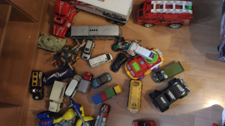 автобус, черный внедорожник, мотоцикл, синий миниавтобус, черная машина с желтым, белый камаз, танк по 50р или отдам к обмену.
