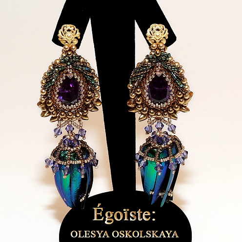Красота природы вдохновляет на создание украшений. Образ яркого окраса павлина в дизайнерских серьгах для свободных и гордых.