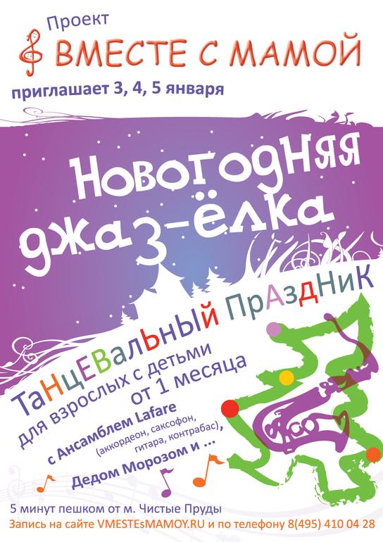Хорошую живую музыку можно слушать вместе с маленькими детьми (0-5 лет). Малыши могут танцевать, ползать, бегать, играть вместе с музыкантами и даже потрогать инструменты. Концерты "Вместе с мамой" - всегда профессиональные, разнообразные и атмосферные. У нас выступают известные коллективы, музыканты мирового уровня.