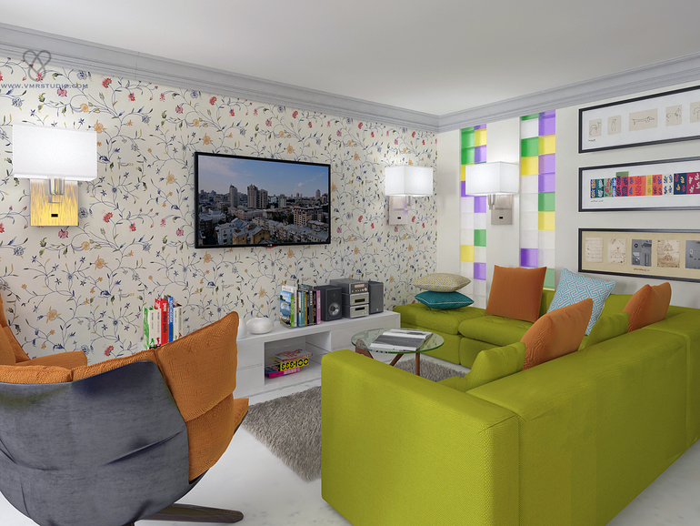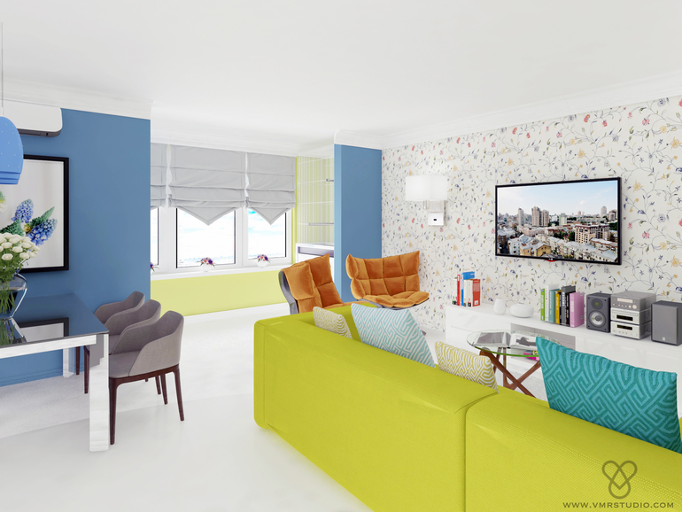 Интерьер мы делали динамичным за счет цветов, которые в любой момент можно будет заменить на другие.
