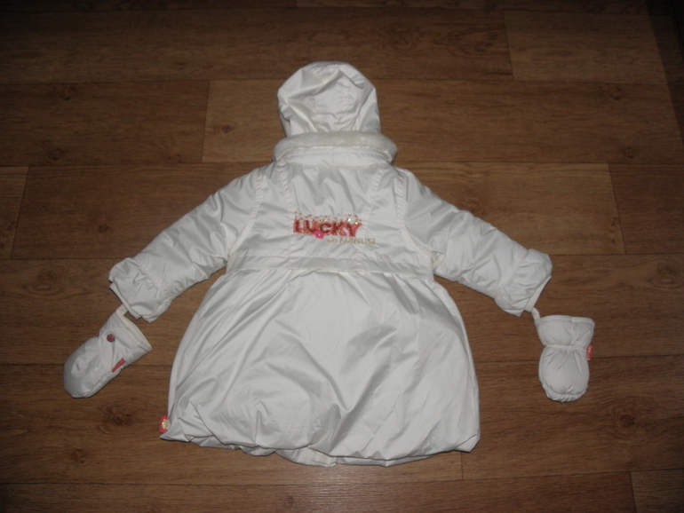 Куртка-пальто PAMPOLINA зимняя.Размер указан 18 мес., реально можно носить до 2 лет. Утеплитель п/э+полиакрил, подкладка термофлис, до -40 мороза, в комплекте c варежками.На рукавах резиночки-манжеты из хлопкового трикотажа.Куртка украшена вышивкой с пайетками. Воротник из иск. меха отстегивается. Варежки отстегиваются. Не носили.