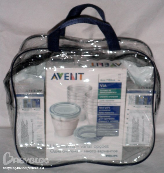 Состав: набор контейнеров для хранения молока Avent Via (10шт)+ бутылочки 125 мл Авент(2 шт) + вкладыши для груди Авент (8шт) + косметичка с ручками.