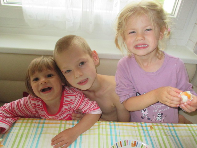 уром, за завтраком, нечёсанные и в пижаме. пашка как обычно подбил себе глаз на ровном месте (на школьной экскурсии).