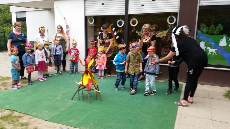 Показали нам представление в стиле "праздник индейцев", потом сладкий стол. Кристина встретилась со своей старой подружкой, которая тоже заканчивает 1 класс и оторвалась по полной, Павел из-за больной шеи вёл себя скромняшкой, Оливка тоже вполне прилично.