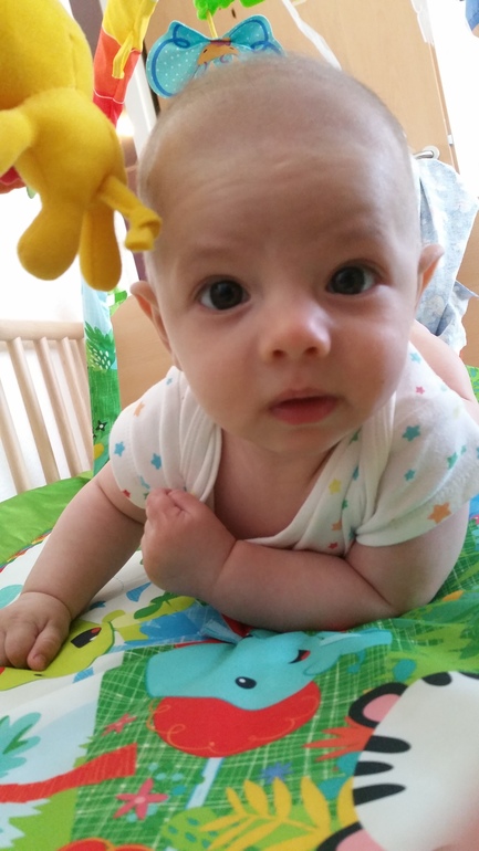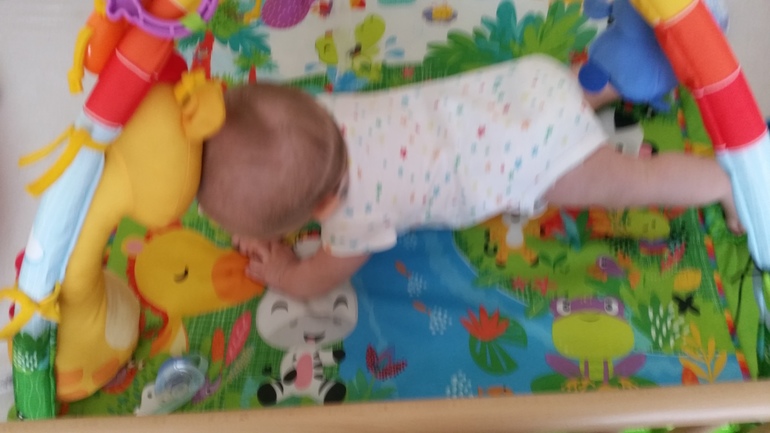 Из умелок: переворот через левый бок, правый и на спину редко. Упорно пытается встать на четвереньки. Усиленно качает пресс. Зубов, как и прививок нет - и грешить-то не на что, когда ребенок не спит-не ест-орет дурниной:))) А орет он знатно. Самую крайнюю степень негодования различаем по тому, как он остервенело дерёт себе уши и лицо.