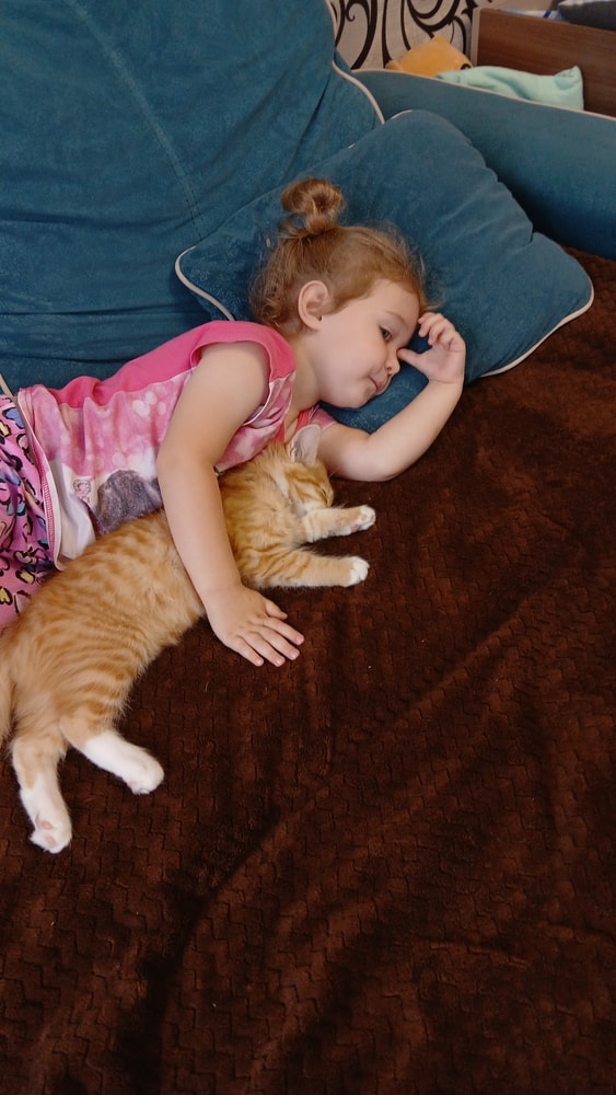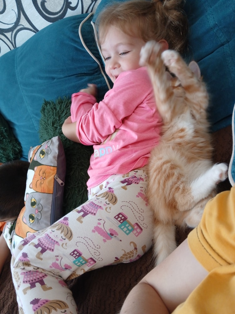 Доча покоя котику не дает, но они спелись😁Сын прохладнее к нему относится, хотя просил именно он))