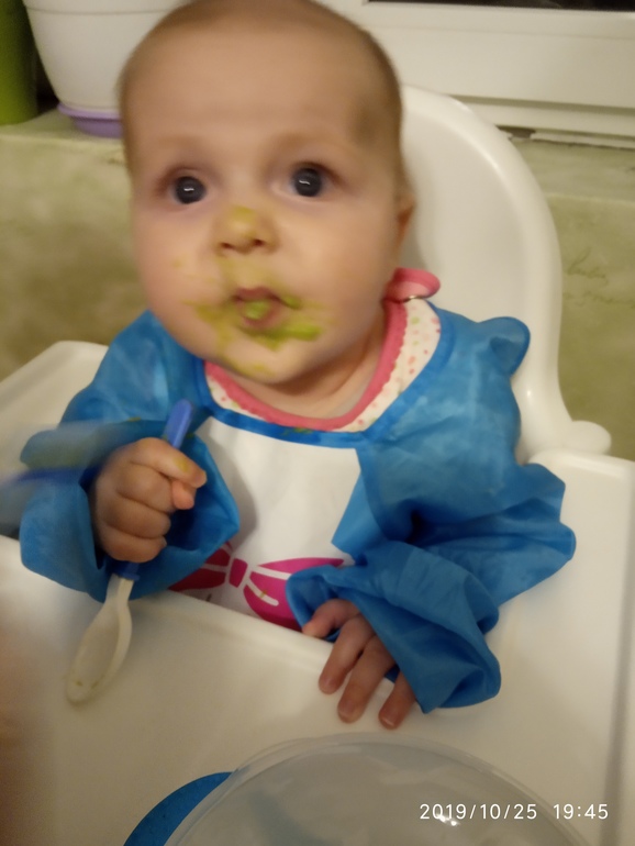 Начали прикорм в 5,5 месяцев. Делала ему кабачок и цветную капусту из замороженных летом запасов. Он пробовал, морщился.. кое как съедал несколько ложек и дальше отказывался... я расстроилась, думала что это потому что я давала ему нектарин в ниблере часто.. и после фруктов он теперь овощи не хочет. Купила каши безмолочные. Начала гречку - кушает отлично. Решила еще предлагать овощи постоянно. А потом тут прочитала в одной из тем, у мамы с такой же проблемой в комментариях один совет.... Попробовала и оказалось что все дело было в консистенции! Я делала пюре через чеснокодавку, потому что порции были маленькие и блендером они не брались просто... пюре получалось грубое, с мелкими кусочками... а блендером сделала нежное-нежное пюре, которое Тимка с удовольствием кушает! Брокколи очень понравилось ему.. кабачок не очень.. пока не сварила из домашнего, с грядки.. его кушает так, что ложку забирает))) Цветную кушает плоховато) Рисовая каша тоже средне... Попробовала сегодня дать чернослив из баночки. Его кушал, а когда добавила в рисовую кашу - съел несколько ложек только. Пришлось срочно разводить его любимую гречу)) Следующую будем пробовать тыкву, наверное) Домашнюю нашу огромную надо кушать) а то половина морозилки забита. И персиками с нектаринами)
