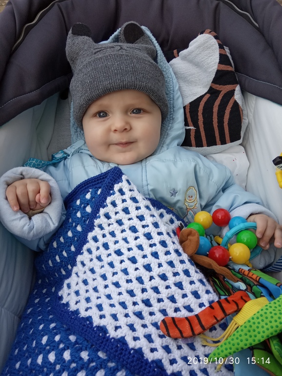 По характеру... Тим очень спокойный, в том смысле что не нервный. Хотя физически активный, любит двигаться. Но делает это очень аккуратно. Несколько раз проверит наощупь, прежде чем положить голову. Перестраховщик. Но пара царапин и ушибиков уже были. Редко сильно плачет, только если прям что-то серьезное. Упёртый маленький бычок.
